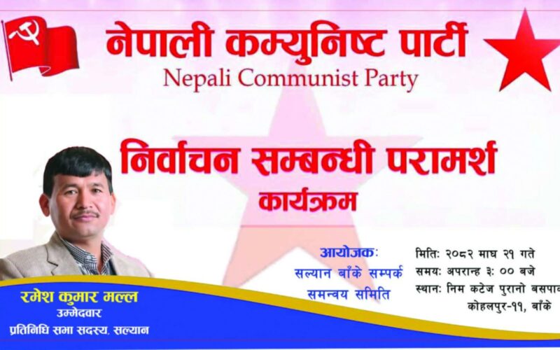 काेहलपुर । नेपाली काँग्रेस बाँके क्षेत्र नं. १ का प्रतिनिधिसभा सदस्य पदका उम्मेदवार नारायण प्रसाद गौडेलले राप्तीसोनारी गाउँपालिका पर्यापर्यटन तथा धार्मिक पर्यटनका हिसाबले अत्यन्त सम्भावनायुक्त...
