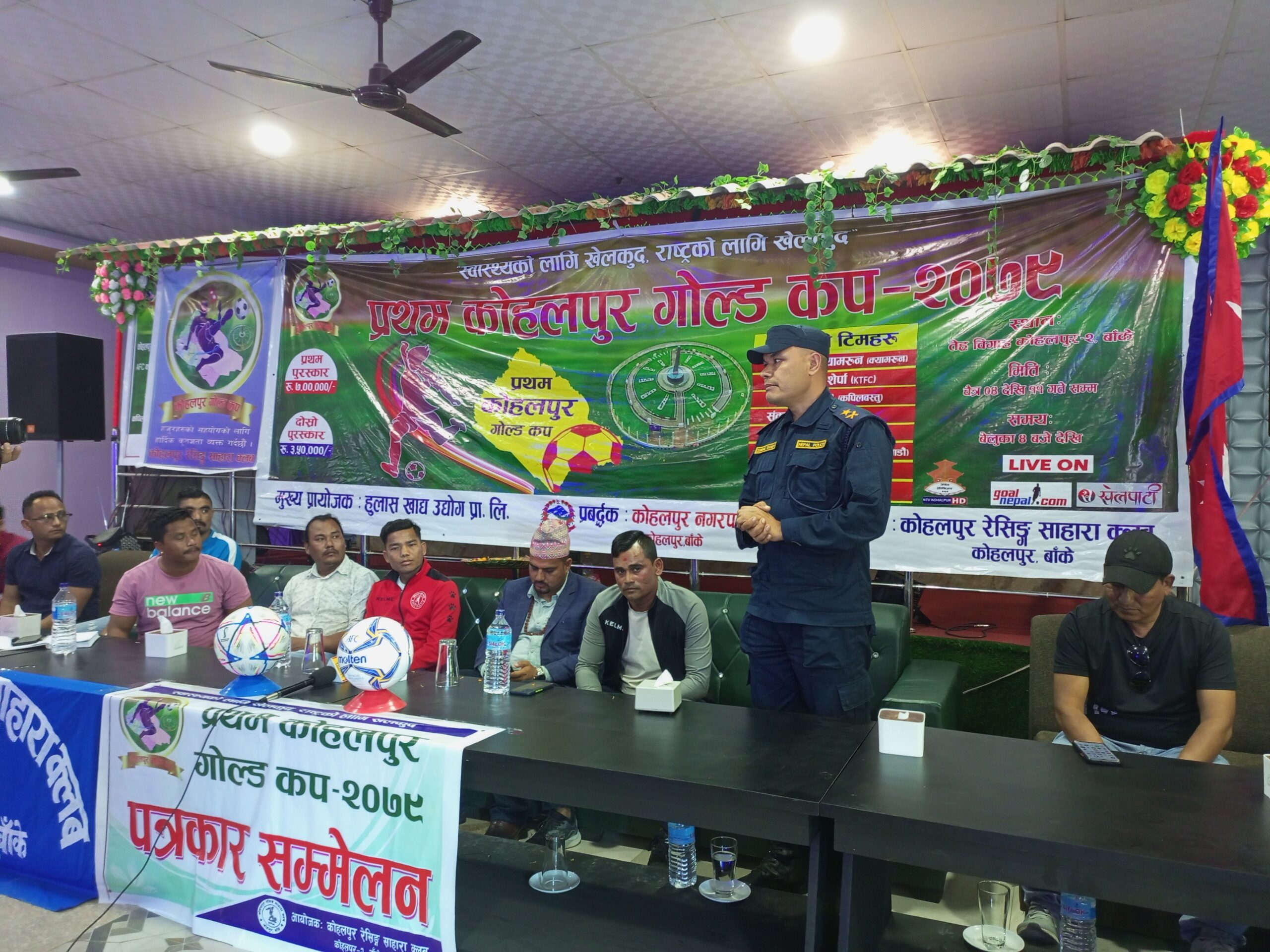 मंगलबार कोहलपुरमा पत्रकार सम्मेलन गर्दै रेसिङ्ग साहारा क्लबले आगामी चैत ४ गतेदेखि ११ गतेसम्म कोहलपुरको १३ विगाहमा प्रथम कोहलपुर गोल्ड कप हुन लागेको रेसिङ्ग साहारा क्लबका अध्यक्ष चक्र क्षेत्रीले जानकारी दिए ।