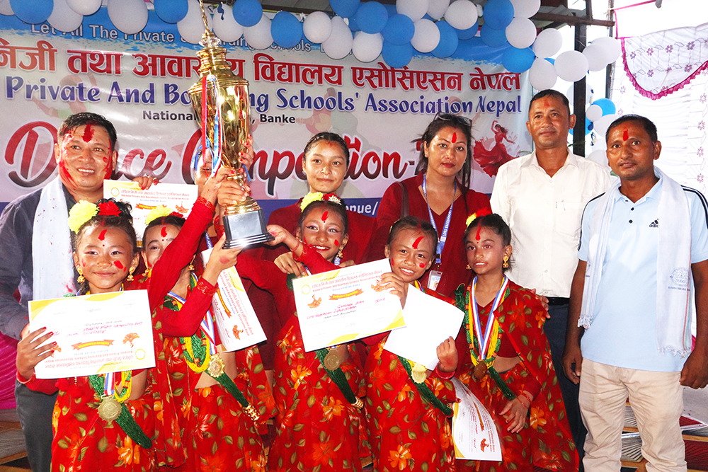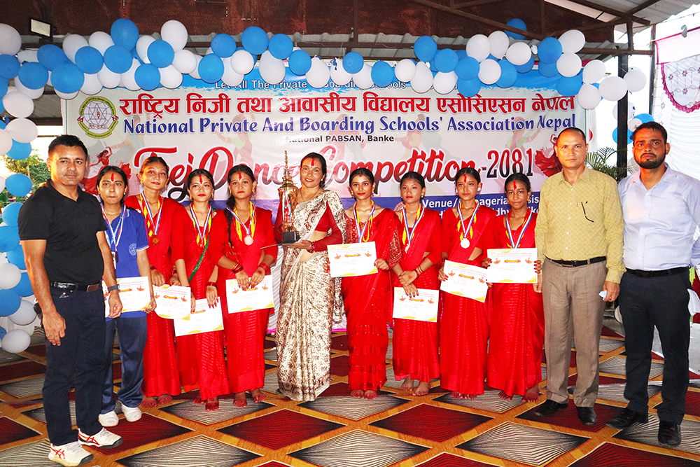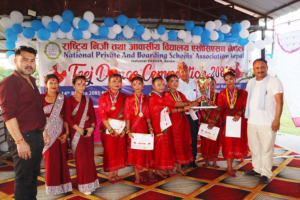 राष्ट्रिय निजी तथा आवासीय विद्यालय एसोसिएसन नेपाल बाँकेको आयोजनामा भएको तिज नृत्य प्रतियोगिता-२०८१ मा पञ्चमुखी ईमि स्कुल प्रथम भएको छ ।