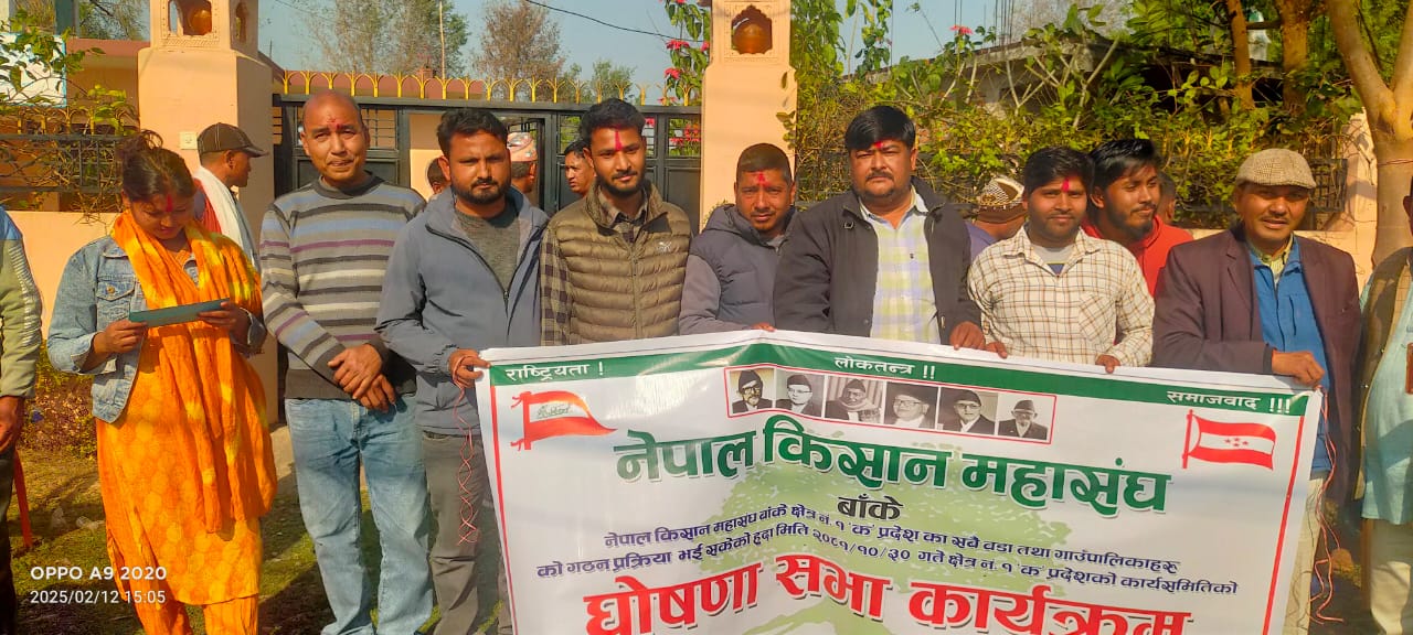 किसानहरुको समस्यालाई कसरी सम्बोधन गरी सम्बन्धित सरोकारवाला निकायहरु समक्ष पु¥याउन सकिन्छ भन्ने उद्देश्यका साथ नेपाल किसान महासंघ बाँके शाखाको गठन गरिएको जनाईएको छ ।