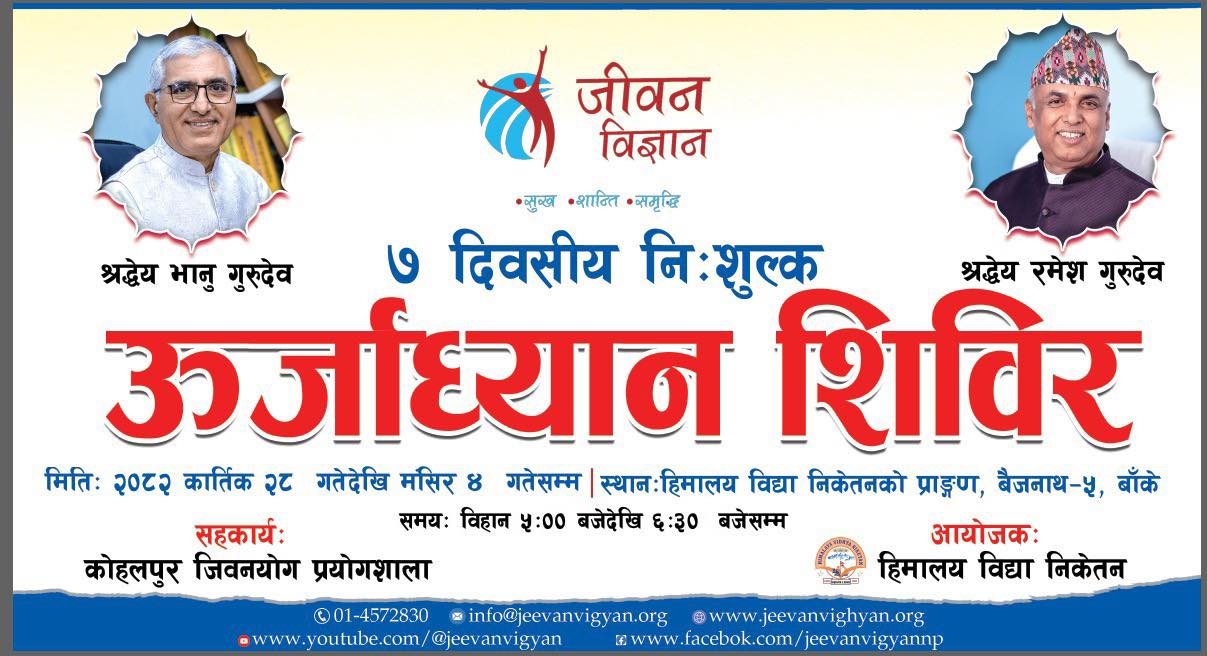 कोहलपुर । बैजनाथ गाउँपालिका—५ मा रहेको हिमालय विद्या निकेतनमा साप्ताहिक उर्जाध्यान शिविर गर्न लागेको छ ।