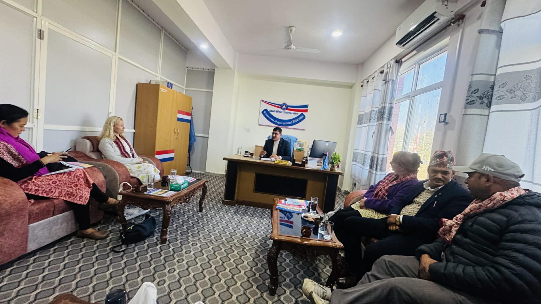 नेपालका लागि फिनल्यान्ड राजदुतावासका शिक्षा परामर्शदाता योहन्ना कुर्की, विशेष शिक्षा सल्लाहकार इन्द्रा गुरुङ, फिनल्यान्ड र युरोपेली संघको सहयोगमा नेपालमा सञ्चालित विद्यालय शिक्षा क्षेत्रमा प्राविधिक सहयोग तथा सहकार्य टेक्सेस नेपाल परियोजना अन्तर्गत समावेशी शिक्षामा अन्तर्राष्ट्रिय विज्ञका रुपमा कार्यरत फिनल्याण्डकी नागरिक डा. माया मकिनेन, उक्त परियोजनाका कर्णाली प्रदेश संयोजक बखत भण्डारी सहितको प्रतिनिधि मण्डलसँग मध्यपश्चिम विश्वविद्यालय अन्तराष्ट्रिय सम्बन्ध निर्देशनालयका कार्यकारी निर्देशक डा. यदुप्रसाद ज्ञवाली, योजना विकास तथा अनुगमन निर्देशनालयका कार्यकारी निर्देशक डा. विष्णुकुमार खड्का र विश्वविद्यालयका सूचना अधिकारी एवम् निर्देशनालयका प्रशासन प्रमुख शेरबहादुर केसी सम्मिलित टोलीले अन्तरराष्ट्रिय सम्मेलन लगायत आगामी दिनमा गर्न सकिने थप शैक्षिक सहकार्यका सम्बन्धमा छलफल गरेको हो । विश्वविद्यालयका तर्फबाट कार्यकारी निर्देशकद्वय डा. ज्ञवाली र डा. खड्काले विश्वविद्यालय र फिनल्यान्डका बीच हुन सक्ने सहकार्यका विविध आयाम बारे उक्त प्रतिनिधि टोलीसँग छलफल गरेका हुन । थ
