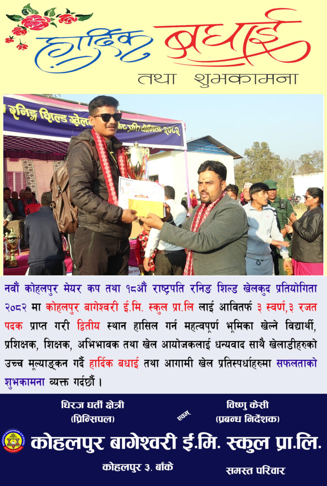 कोहलपुर बागेश्वरी ई.मि. स्कुलद्धारा हार्दिक बधाई तथा शुभकामना !