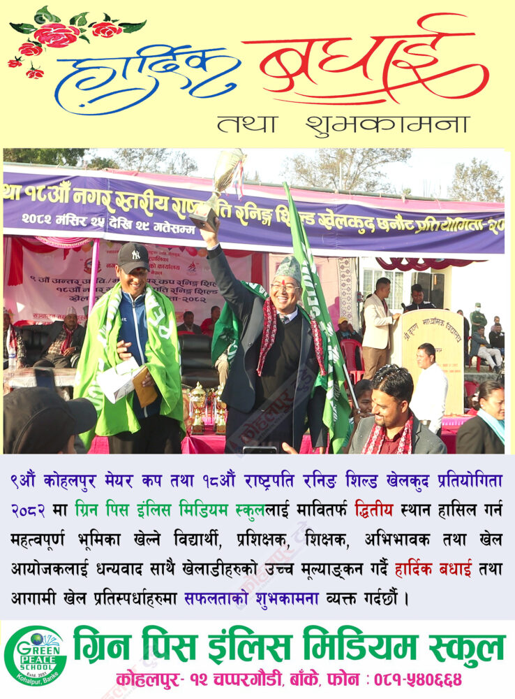 ग्रिन पिस ई.मि. स्कुलद्धारा हार्दिक बधाई तथा शुभकामना !