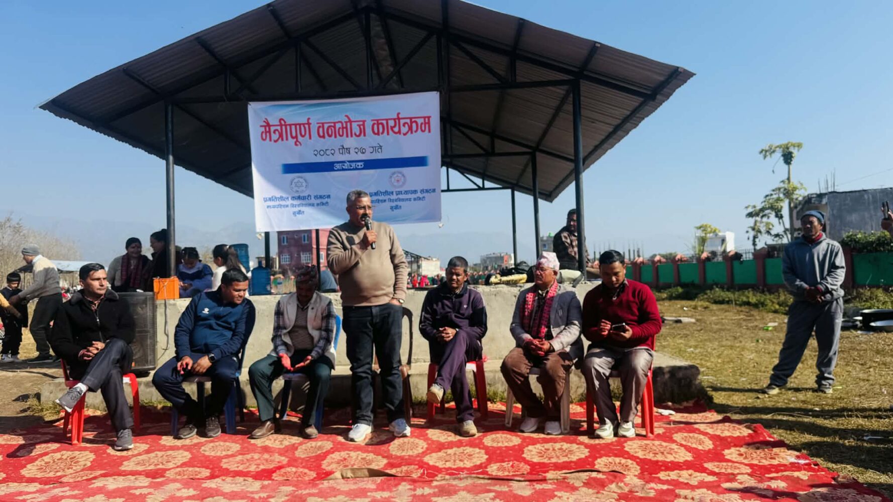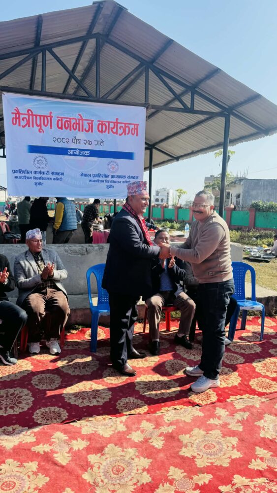 सुर्खेत, पुस २७ गते । नेपाल प्रगतिशील प्राध्यापक संगठन तथा कर्मचारी संगठन मध्यपश्चिम विश्वविद्यालय कमिटिको संयुक्त आयोजनामा आज वीरेन्द्रनगर, सुर्खेत स्थित बुलबुले पार्कमा मैत्रीपूर्ण वनभोज कार्यक्रम सम्पन्न भएको छ ।