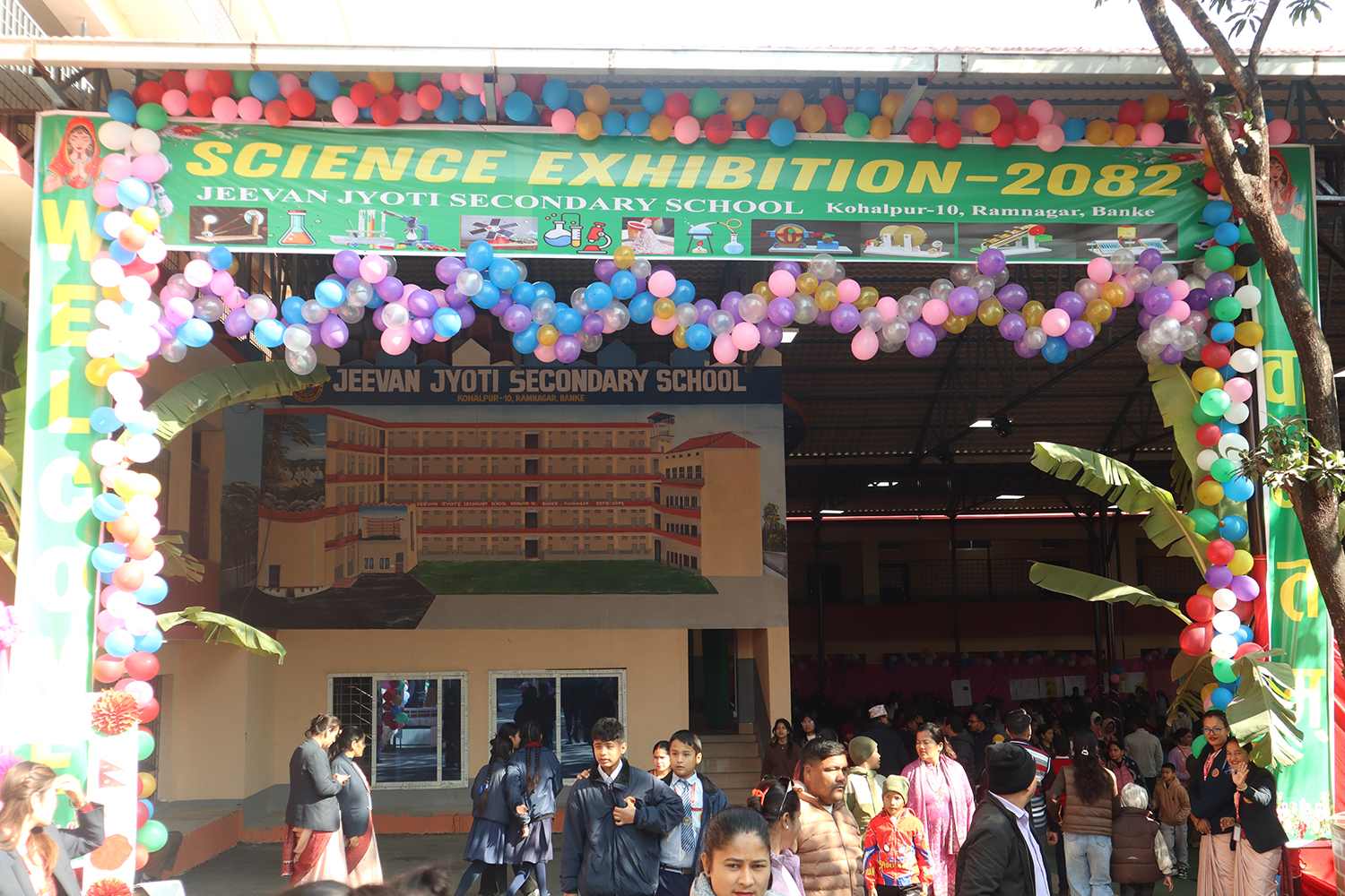 कोहलपुर । बाँकेको कोहलपुर नगरपालिका १० मा रहेको जीवनज्योति स्कुलमा विज्ञान प्रदर्शनी, कला र सीप आयोजना गरिएको छ । शनिबार विद्यार्थीहरूको वैज्ञानिक सोच, व्यवहारिक ज्ञानलाई प्रोत्साहन गर्ने उद्देश्यले विज्ञान प्रदर्शनी तथा कला र सीप आयोजना गरेको हो ।