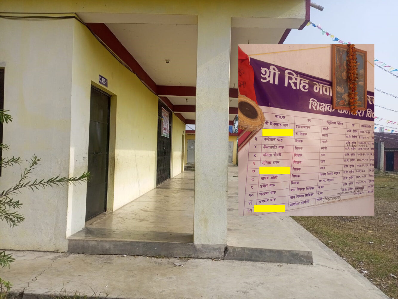 डिल्ली शाही । ‘कसैलाई के धन्दा घरज्वाईंलाई खानको धन्दा’ भने जस्तै छ सिंह भवानी आधारभूत विद्यालयका शिक्षक र कर्मचारीको अवस्था छ । विद्यालयको नाजुक छ अवस्था, समयमा विद्यालयमा पठनपाठन हुँदैन, शिक्षक छैनन, विद्यार्थी छैनन तर तलब भने प्रत्येक महिनामा दिनुपर्ने । यो सरकारी सम्पतीको दुरुपयोग मानिन्छ ।