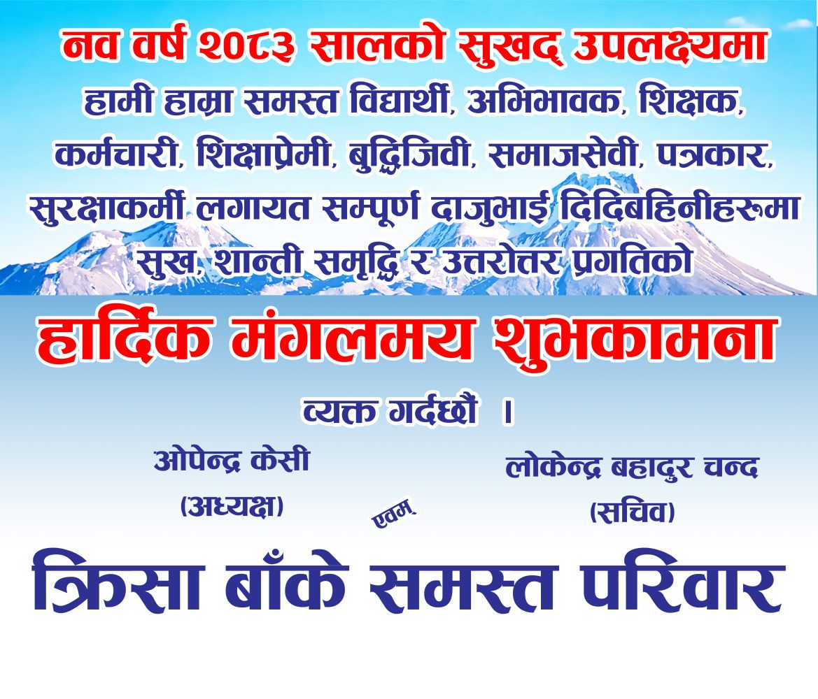 क्रिसा बाँकेद्वारा नव वर्ष २०८३ सालको शुभकामना