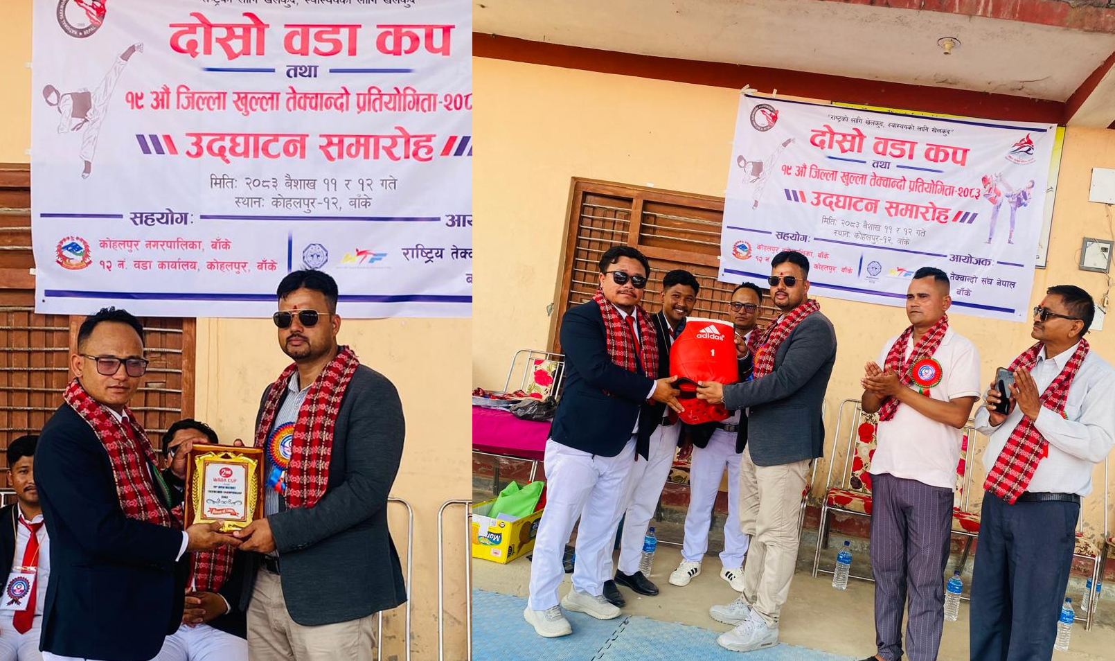 शुक्रबार ‘राष्ट्रका लागि खेलकुद, स्वास्थ्यको लागि खेलकुद’ भन्ने मुल नाराका साथ बाँके जिल्ला राष्ट्रिय तेक्वान्दो संघ नेपालको आयोजना तथा कोहलपुर नगरपालिका १२ वडाको आर्थिक सहयोगमा दोस्रो वडा कप तथा १९औं जिल्ला खुल्ला तेक्वान्दो प्रतियोगिता २०८३ सुरु भएको हो ।