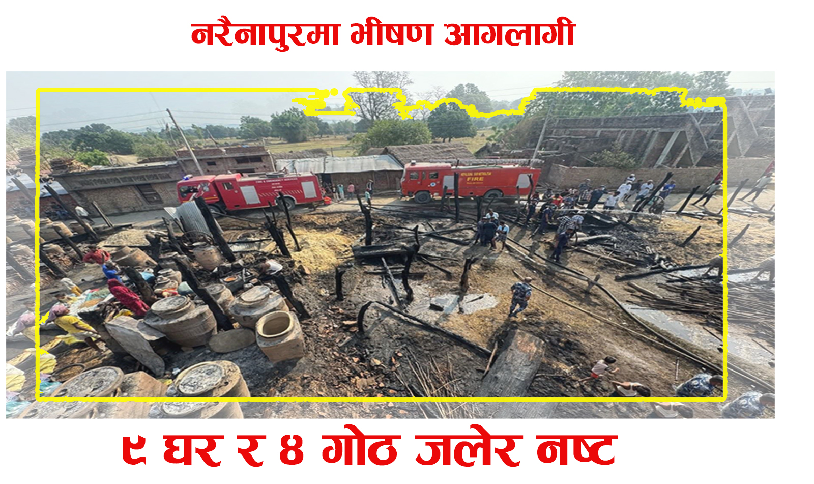 काेहलपुर । नरैनापुर गाउँपालिका–३ स्थित गेग्ली गाउँमा मङ्गलबार बिहान भीषण आगलागी हुँदा ९ वटा घर र ४ वटा गोठ गरी १३ वटा संरचना पूर्ण रूपमा जलेर नष्ट भएका छन्।